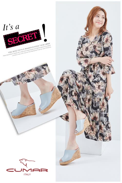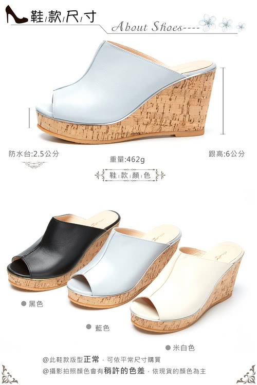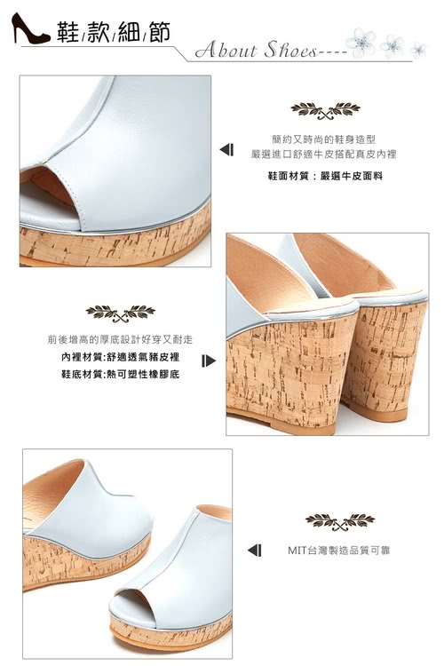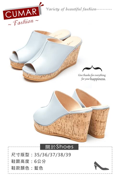 好鞋推薦 【CUMAR】簡約設計感真皮船台涼鞋(藍)